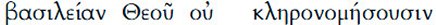 “必不能承受上帝的国”basileian Theou ou klēronomēsousin,英文直译:Kingdom God's not will inherit。