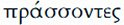 prassó,文法是 Perfect Participle Active, Nominative Masculine Plural,“持续实践、形成习惯”的行为动词。虽然是现在时分词(表持续性),但按冯荫坤博士的说法,“分词 (prassontes) 与冠词(hoi)合成名词性结构时,不必强调时态,而应理解为一种定型化的生活方式。”