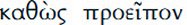 ha prolegō hymin, 英文 (as to which)(I forwarn) (you)-