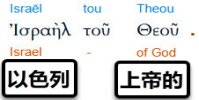 kai epi ton Israēl tou Theou ,英文直译 and upon the Israel of God. 其他版本也有不同的翻译,如