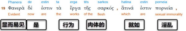 1。淫乱 - 泛指一切违反性道德秩序的行为,包括卖淫、淫乱,一切异教文化中盛行的性罪。被列为“肉体的行为”之首,因为它是人堕落的最明显标志:既破坏身体的圣洁,也象征灵魂对上帝的不忠。凡行此类事的人,不能承受上帝的国。