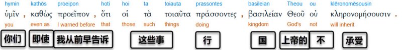 ha prolegō hymin, 英文 (as to which)(I forwarn) (you)-