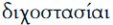 (英文 rebellion,立场、对立),字面意思是“分裂成两边、分裂的状态”。意思是:“一种具有破坏性的现实(the destructive reality)——因对立而分离,使信徒群体的合一被撕裂。凡是破坏人与人、人与神关系的“分裂”或“敌对”,都体现这种“肉体的作为”的本质。”