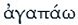agapē,英文 love,这是新约中最突出的一个字,共出现一百多次,如“基督的爱”(罗八:35 “谁能使我们与基督的爱隔绝呢?。。”;“上帝的爱”(罗八:39 “是高处的、是低处的,是别的受造之物,都不能叫我们与上帝的爱隔绝;这爱是在我们的主基督耶稣里的。”它比朋友之间的“爱”