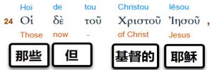 Hoi de tou Christou Iēsou,英文直译:those now of Jesus Christ。原文没有“凡”字,中文直译“那些属于基督耶稣的人”。谁是属于基督耶稣的人?