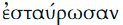 stauroó (“钉十字架”),文法是不定过去式,直说语气,主动语态,第三人称复数(aorist, indicative, active,3rd per plural),其特征通常是词干加后缀 -σαν,表示过去发生的动作。