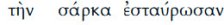 “是已经把肉体连肉体的邪情私欲同钉在十字架上了。”(《新译本》:是已经把肉体和邪情私欲都钉在十字架上了。) -tēn sarka estaurōsan,英文 the flesh have crucified,中文“肉体都钉在十字架”。