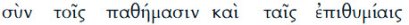syn tois pathēmasin kai tais epithymiais 英文 with its passions and desires “邪情和私欲”结合在一起。