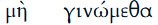 “不要贪图虚名”(《新译本》:我们不可贪图虚荣)- “我们不要/不可”mē ginōmetha,英文 Let us cease becoming,来自动词