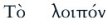 To loipon(宾格 accusative),如腓三:1 “弟兄们,我还有话说(